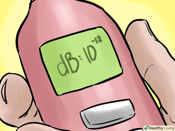Використовуйте професійний вимірювач децибел.зазвичай це недешево, але, можливо, це найпростіший спосіб отримати точні вимірювання рівня звуку, який вас цікавить. Також такий пристрій називають "вимірювач рівня звуку", це спеціалізований пристрій (можна купити в інтернет-магазині або спеціалізованих магазинах), які використовує чутливий мікрофон для вимірювання рівня шуму навколо і видає точне значення в децибелах. Так як подібні пристрої не користуються великим попитом, вони можна бути досить дорогими, часто ціни на них починаються з $200 навіть за пристрої початкового класу. [6]- Зверніть увагу, що вимірювач децибел/рівня звуку може називати трохи інакше. Наприклад, інший подібний пристрій під назвою "вимірювач шуму" робить те ж саме, що і вимірювач рівня звуку.