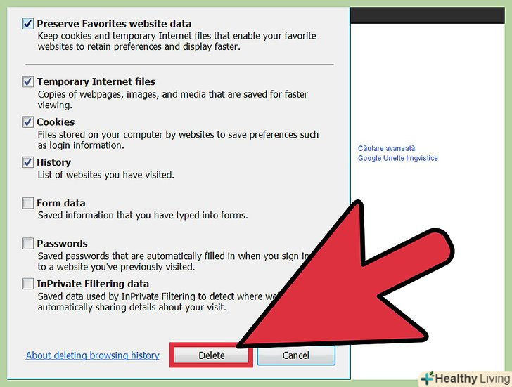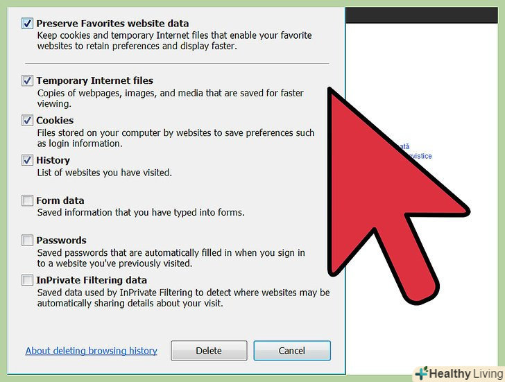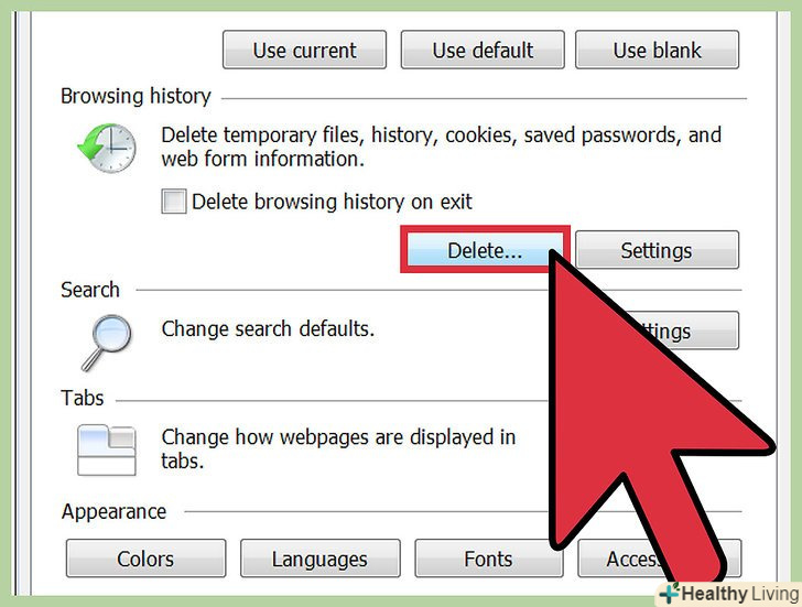 Перейдіть на вкладку "Загальні".у розділі "Історія перегляду" натисніть " Видалити». Відкриється вікно, в якому потрібно підтвердити, що ви хочете видалити файли. Натисніть "Видалити все «gt;»так".[2]