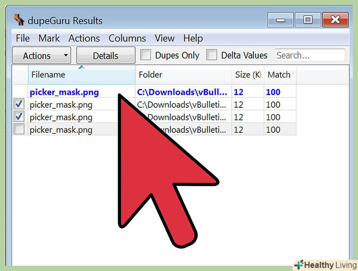 Виберіть програму для пошуку дублікатів файлів.існує безліч програм, які знаходять і видаляють дублікати файлів на жорсткому диску. Популярними програмами є dupeGuru, VisiPics, Duplicate File Finder і Digitalvolcano's Duplicate Cleaner Free.[3]