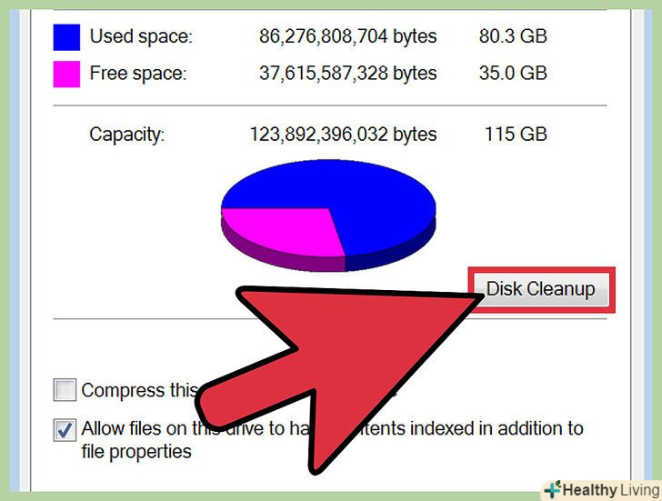 Натисніть "Очищення диска".ця опція знаходиться у вікні властивостей диска. "Очищення диска" - це вбудована утиліта Windows, за допомогою якої можна видалити непотрібні файли.
