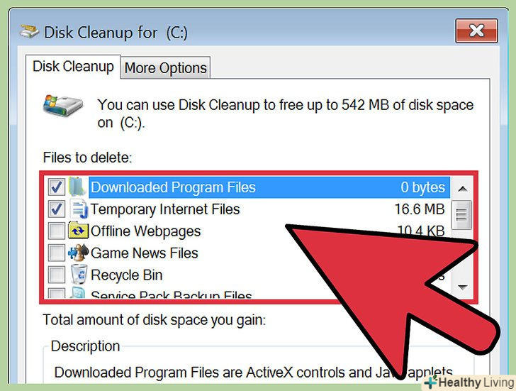 Вкажіть файли, які ви хочете видалити.швидше за все, ви захочете видалити тимчасові файли, файли журналів, файли кошика та інші другорядні файли; щоб вибрати файли, встановіть біля них прапорці.[1]