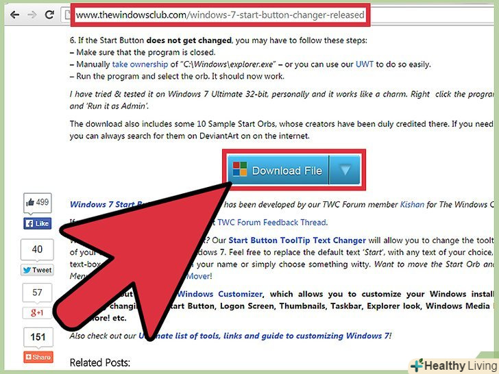 Завантажте програму для зміни значка кнопки "Пуск".хоча ви можете використовувати портативний виконуваний редактор для того, щоб знайти фали значків для кнопки "Пуск", набагато простіше скористатися програмою, яка називається "Windows 7 Start Button Changer". Це безкоштовна програма, створена командою ентузіастів-користувачів Windows 7.- Ви легко можете знайти програму в мережі, використовуючи будь-яку пошукову систему. Вводите в пошукове поле "windows 7 start button changer". Спробуйте завантажити програму з сайту розробників The Windows Club, щоб бути впевненими в тому, що встановлюєте безпечну версію.