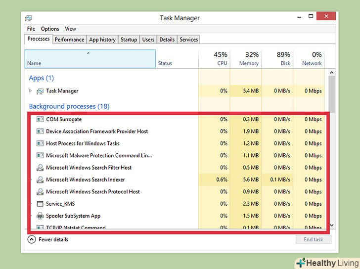 - Зверніть увагу на стовпець "Пам'ять", щоб побачити, скільки пам'яті використовує кожен процес.