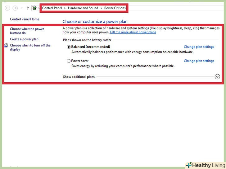 - Змініть план електроживлення, натиснувши на посилання "Налаштування плану електроживлення".