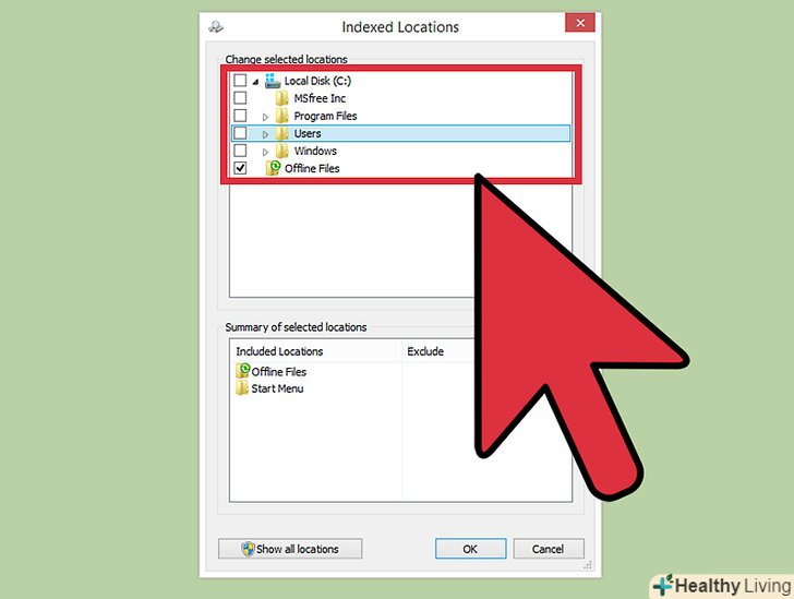 - Виберіть усі папки та підпапки, які не хочете індексувати.