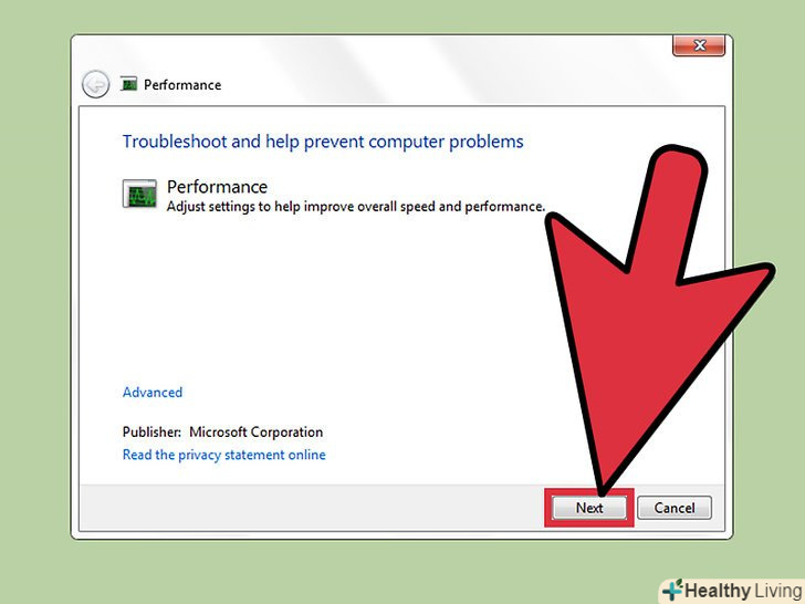 Запустіть засіб усунення неполадок продуктивності.ця програма усуває проблеми продуктивності, пов'язані з Windows, і прискорює роботу повільних комп'ютерів.- Натисніть кнопку "Пуск".