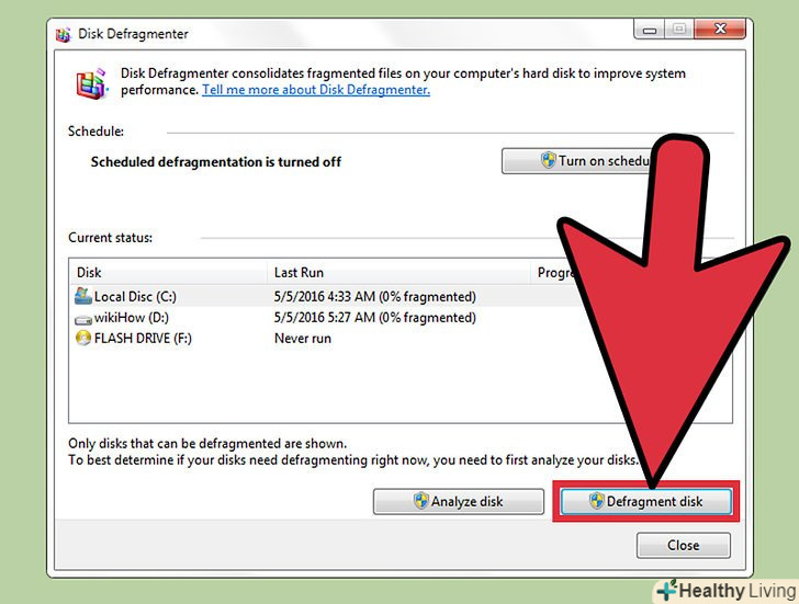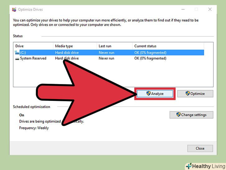 - Натисніть на "аналізувати диск", щоб дізнатися, чи потрібно дефрагментувати цей конкретний диск.