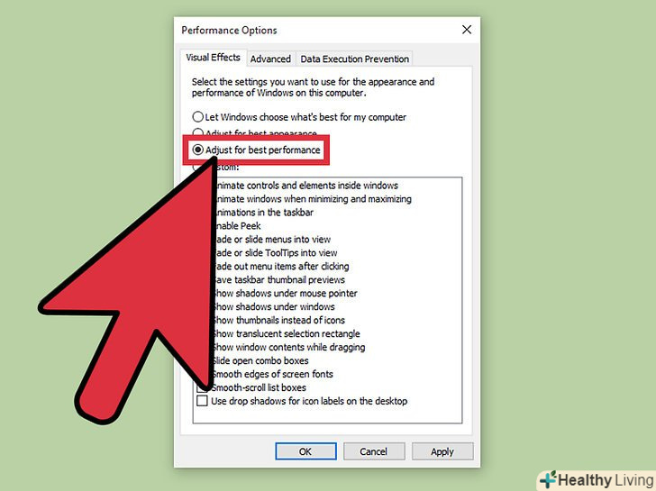 - Натисніть на " забезпечити найкращу швидкодію» або вимкніть кожен ефект вручну.