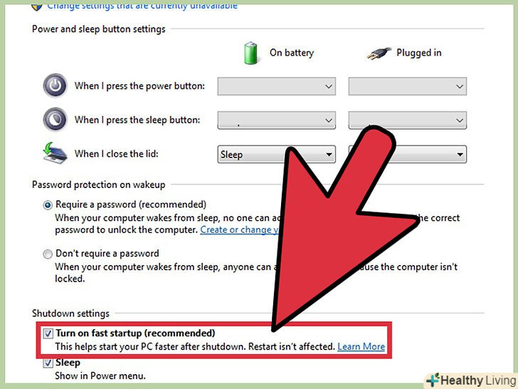 - Натисніть на "Включити швидкий запуск «в розділі»Параметри завершення роботи".