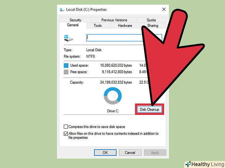- Натисніть на "очищення диска «на вкладці»Загальні".