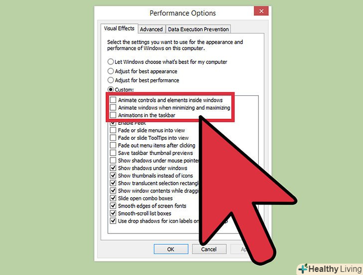 - Зніміть прапорець з параметра "Анімація вікон".