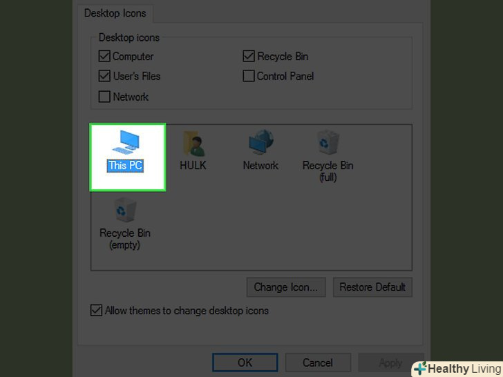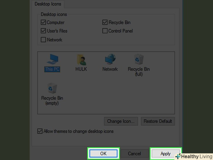 - Встановіть прапорець біля «дозволити темам змінювати значки на робочому столі", щоб включити зміни значків, пов'язаних з темою.