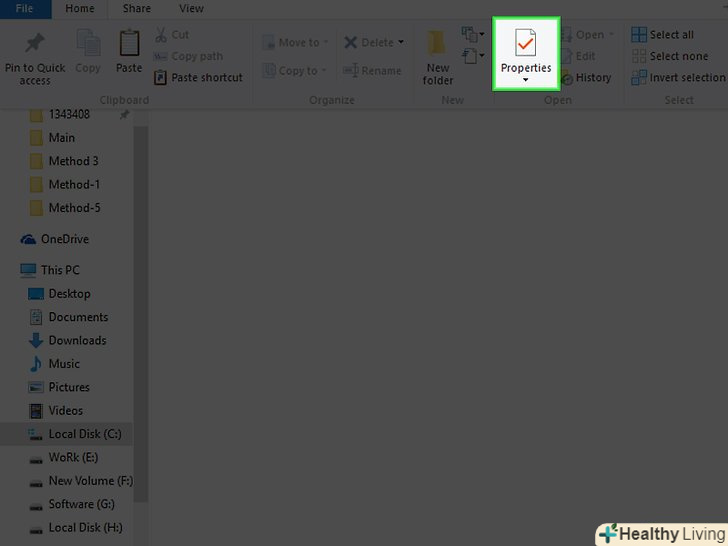 НатиснітьВластивості.ця опція відзначена значком у вигляді білого квадрата з червоною галочкою і знаходиться в розділі "відкрити" панелі інструментів.- Також можна клацнути правою кнопкою миші по значку на робочому столі, а потім в меню вибрати "Властивості".