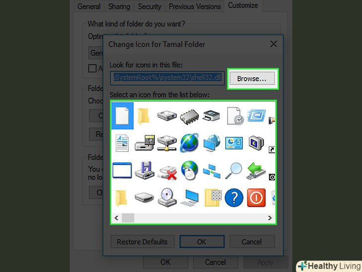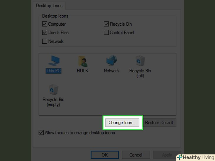 НатиснітьЗмінити значок. це опція в нижній частині вікна.