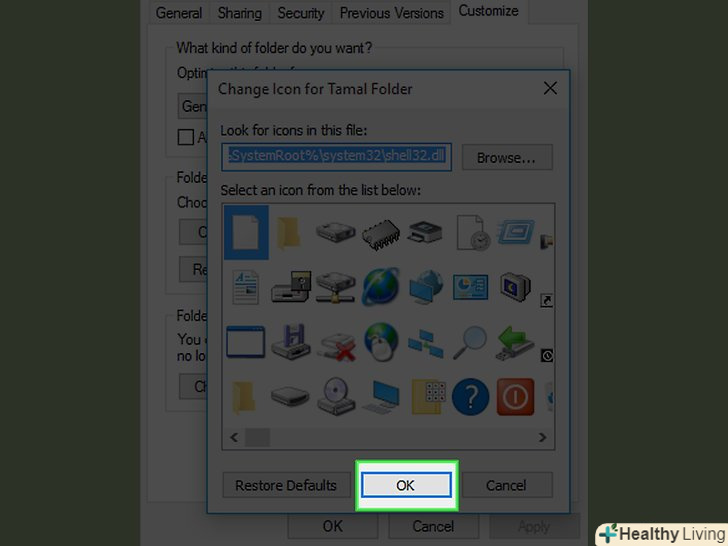 Клацніть поЗастосувати gt; OK. так ви підтвердите своє рішення і замініть вихідний значок на обраний вами значок.