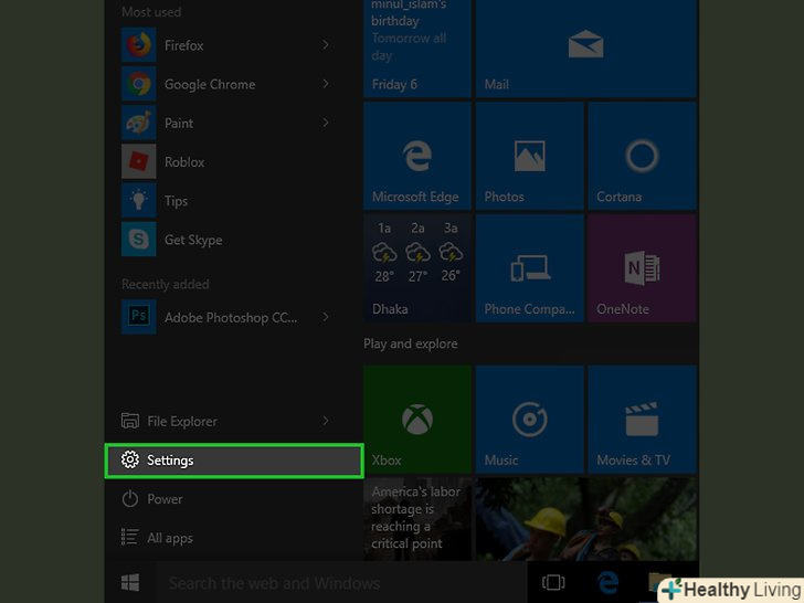 Натисніть «Параметри».ця опція знаходиться в лівому нижньому кутку меню»Пуск".