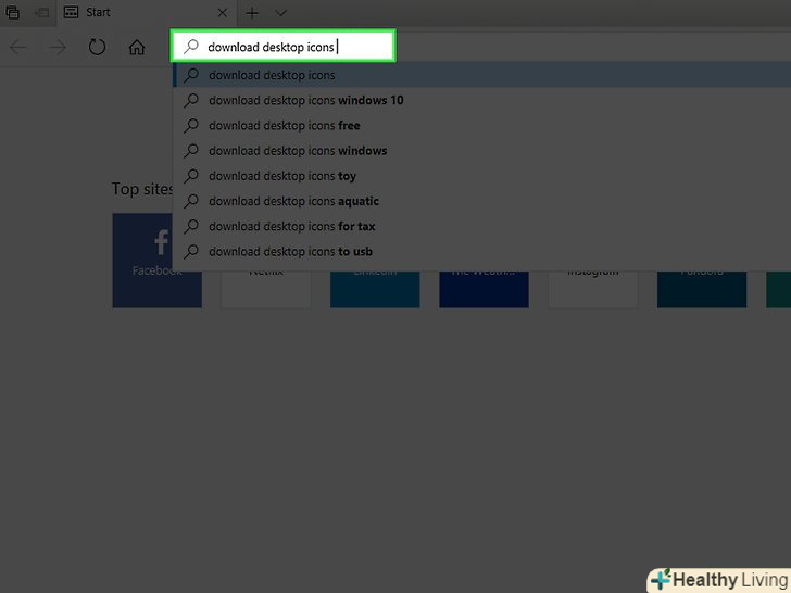 Знайдіть піктограми Windows. Введіть завантажити значки робочого столу Windows в адресному рядку браузера та натисніть ↵ Enter.- Щоб звузити пошук, введіть ім'я програми (наприклад,значок цей комп'ютер windows) або формат файлу (наприклад, ICO).