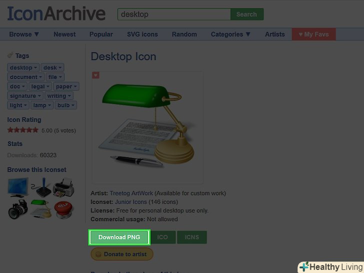 Скачайте потрібні значки.для цього відкрийте сайт зі значками і натисніть "Завантажити»або "завантажити". Значки будуть завантажені на комп'ютер.- Якщо ви завантажуєте відразу кілька значків, спочаткувитягніть їх з архіву в звичайну папку.