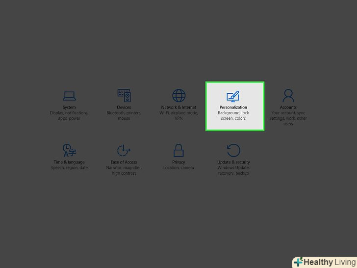 Клацніть поПерсоналізація. це значок у вигляді монітора на сторінці налаштувань Windows.- Також можна клацнути правою кнопкою миші по порожньому простору робочого столу і в контекстному меню вибрати «Персоналізація».