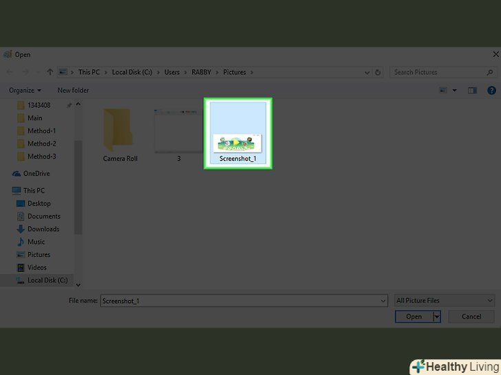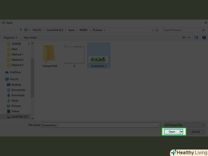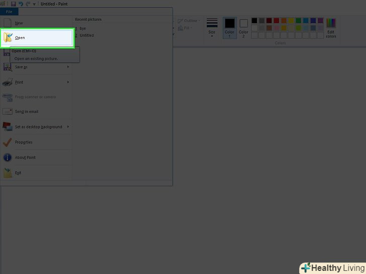 НатиснітьВідкрити.ця опція знаходиться в меню "Файл". Відкриється вікно, в якому можна знайти папку з картинками.- Якщо ви хочете створити значок з нуля, тобто намалювати його в Paint, пропустіть цей крок.