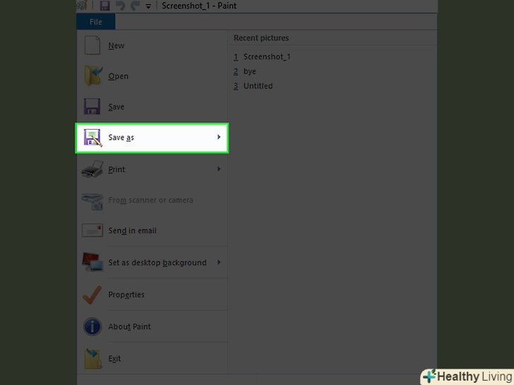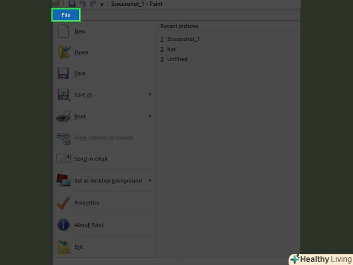 Клацніть поФайл ще раз. це меню знаходиться у верхньому лівому куті Paint.