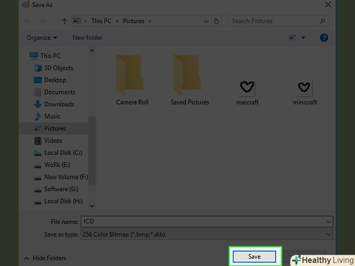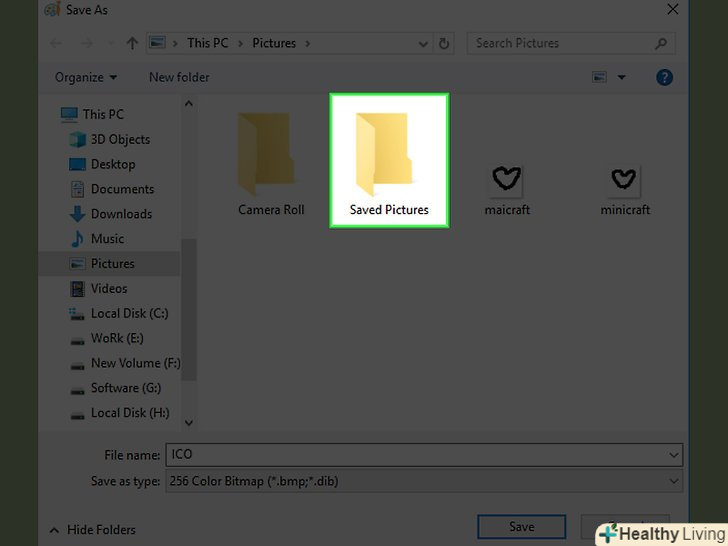 Клацніть по папці, в якій хочете зберегти файл.зробіть це на лівій панелі вікна "Зберегти як".- Рекомендуємо зберегти значок в папці "Зображення".