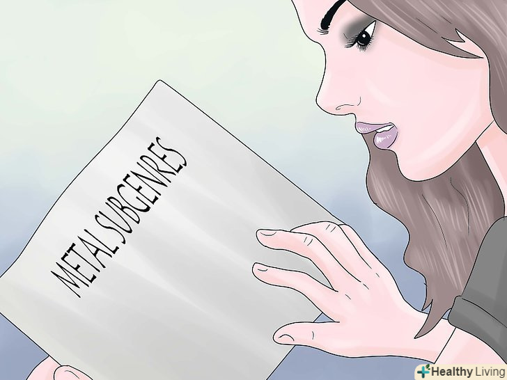 Переконайтеся, що Ви знаєте кілька груп з кожного піджанру металу.ось деякі з піджанрів металу: треш-метал, Дез-метал, Блек-метал, Пауер-метал, металкор, і СНІД-метал. Список груп і відповідних піджанрів вказано в розділі "Поради".