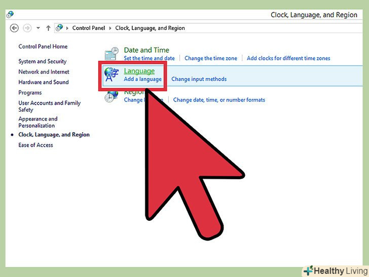 Щоб змінити поєднання клавіш, відкрийте мовну панель.для цього натисніть «Панель управління» - "годинник, мова і Регіон» - «мова» - "Додаткові параметри" (зліва).- Натисніть "Змінити поєднання клавіш для мовної панелі". Відкриється нове вікно, в якому ви можете змінити поєднання клавіш для зміни розкладки клавіатури.