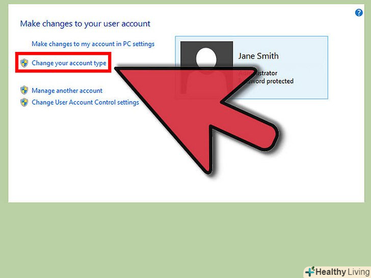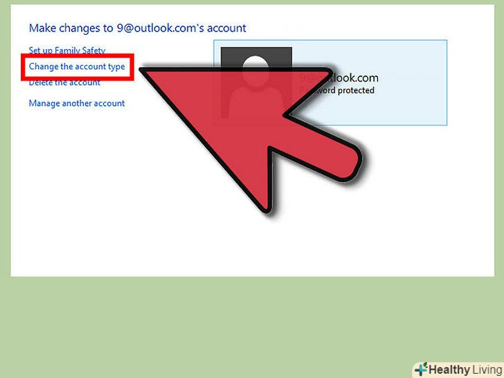 Натисніть на посилання "Змінити тип облікового запису".відкриється нова сторінка з іншими настройками облікового запису.