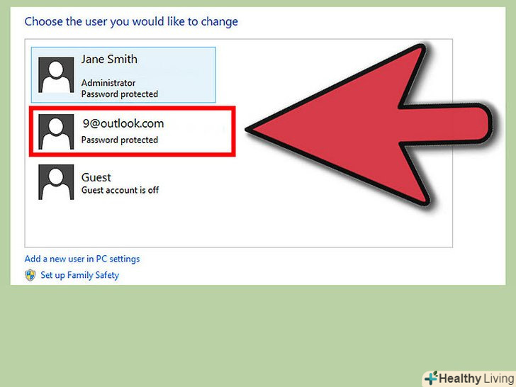 Виберіть опцію "облікові записи користувачів"у верхньому лівому куті.