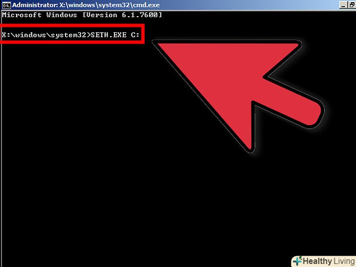 У командному рядку скопіюйте файл Seth на диск C. введіть цю команду:"C:\windows\system32\Seth.exe c:” (without quotation marks).