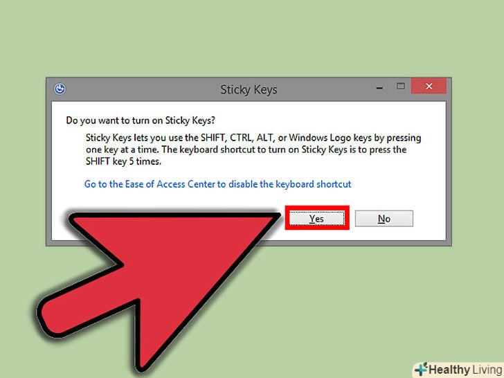 Натисніть клавішу shift 5 разів, один за іншим, коли з'явиться екран з обліковим записом Користувача. З'явиться вікно залипання клавіш, натисніть Так.