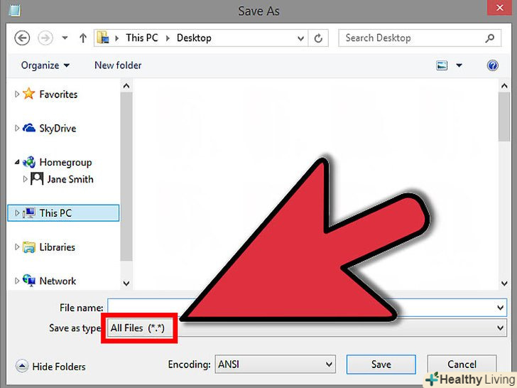 Відкрийте Notepad і натисніть "save as" або «зберегти як». виберіть "Усі типи0 файлів" з меню. Назвіть свій файл: "123.bat:".
