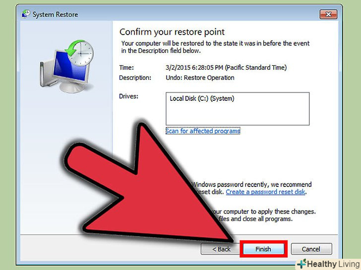 Виконайте відновлення.після того як ви вибрали вашу точку відновлення, почекайте поки буде завершено відновлення. Процес відновлення може зайняти значну кількість часу. Комп'ютер перезавантажиться під час процесу відновлення, а потім Windows завантажиться з повідомленням, що підтверджує, що відновлення було успішним.