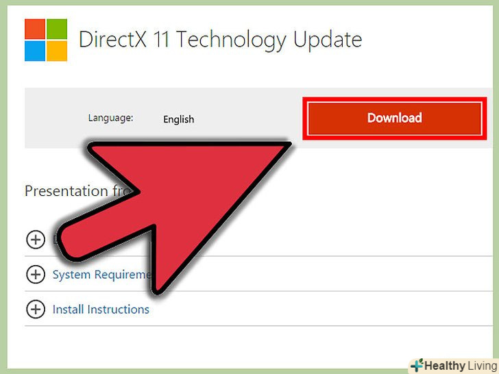 Завантажте програму встановлення DirectX від Microsoft.якщо у вас виникли труднощі при запуску програм і ви отримали помилки DirectX, у вас, можливо, є пошкоджені файли DirectX або вони відсутні. Найкращий спосіб спробувати виправити це-встановити останню версію DirectX. Інсталятор доступний безкоштовно від Microsoft.- Якщо у вас виникли питання, оновлення до останньої версії може допомогти набагато більше, ніж видалення.