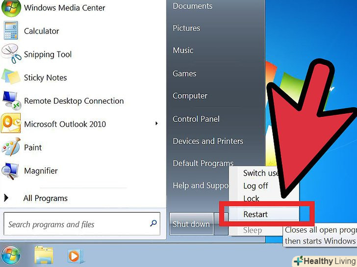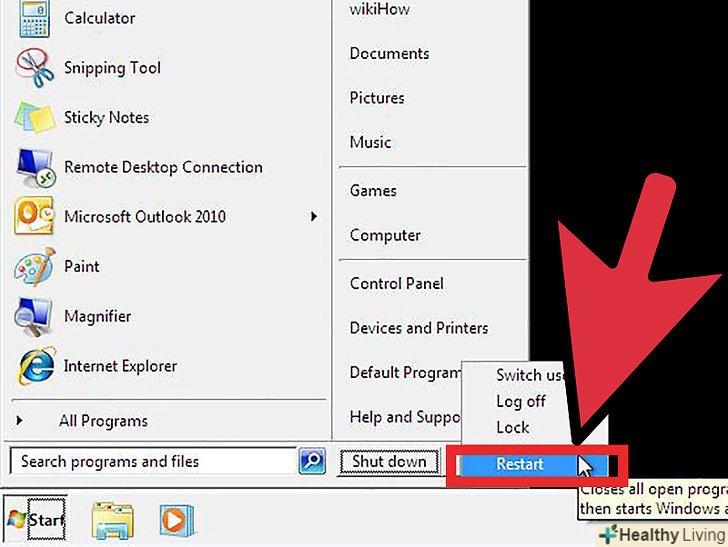 Натисніть на меню " Пуск "і виберіть" перезавантаження "з меню"завершення роботи".