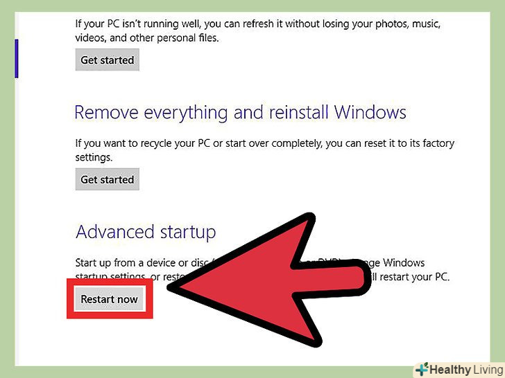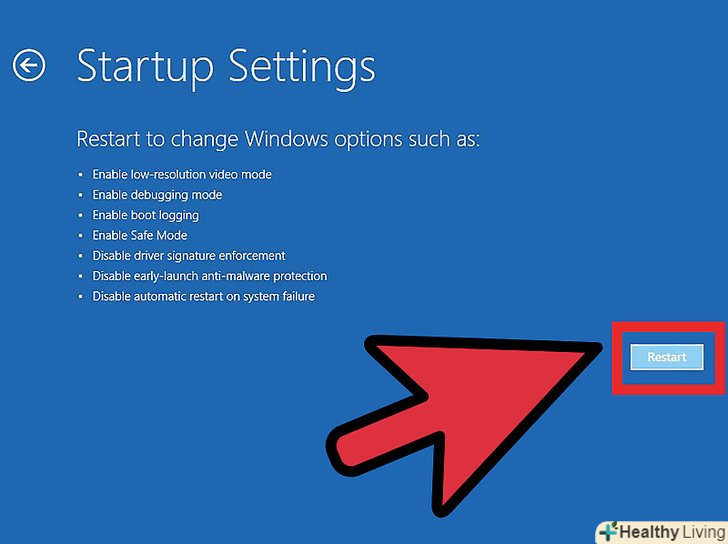 Торкніться "перезавантаження" у нижньому правому куті екрана.- Виберіть " Увімкнути безпечний режим. ваш комп'ютер перезавантажить Windows 8, використовуючи основні драйвери, необхідні для запуску Windows.[1].
