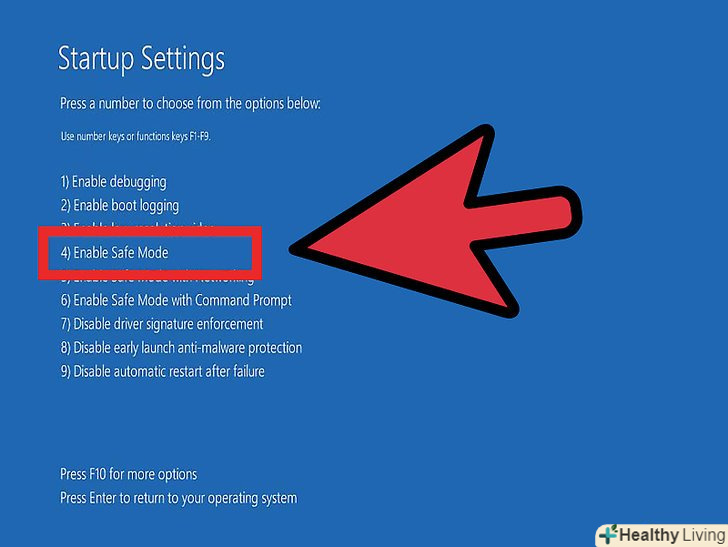 - Windows пропонує різні типи безпечних режимів, залежно від виправлення помилок, які ви хочете виконати. Виберіть "включити безпечний режим із завантаженням мережевих драйверів", якщо вам необхідний доступ до Інтернету під час виправлення помилок, або виберіть "включити безпечний режим з підтримкою командного рядка", якщо ви маєте намір вводити команди під час сесії виправлення помилок.