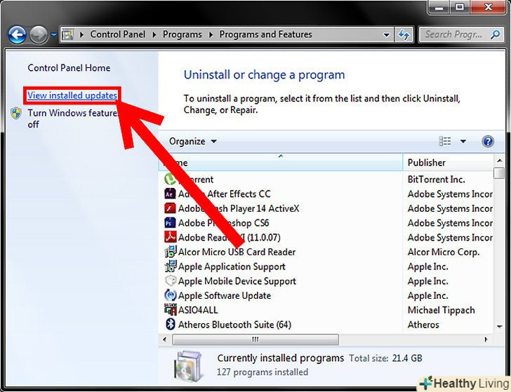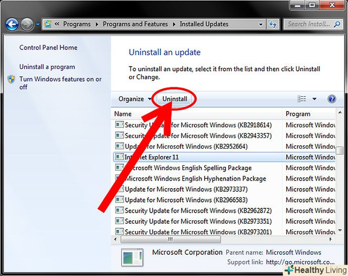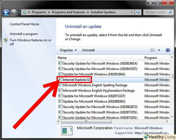 Відкрийте список встановлених оновлень Windows.натисніть на посилання "Перегляд встановлених оновлень" зліва від списку програм. Відкриється список всіх оновлень системи. Оскільки Internet Explorer-компонент Windows, його оновлення теж будуть відображені в списку.