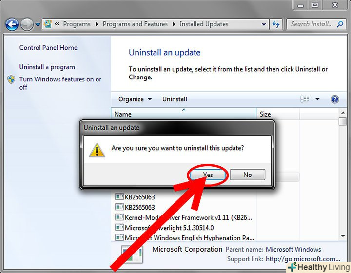 - Підтвердіть видалення оновлення, натиснувши на кнопкуТак У вікні. Можливо, ви отримаєте повідомлення служби контролю облікових записів користувачів.