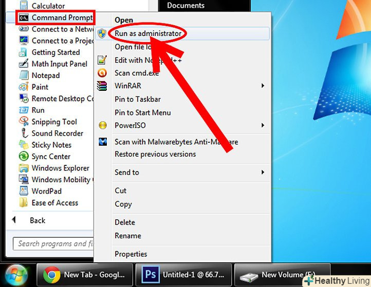 Запустіть командний рядок з правами адміністратора. для цього перейдіть в меню Пускgt;всі програми gt;стандартні, клацніть правою кнопкою миші на значку командного рядка і виберіть пункт "Запуск від імені адміністратора".