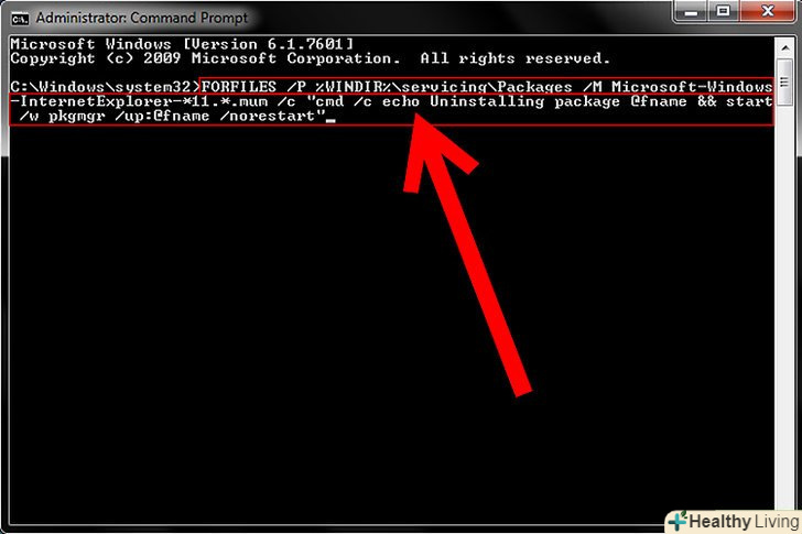 Скопіюйте та вставте наступну команду. з її допомогою ви видалите оновлення Провідника Windows:[2]FORFILES /P %WINDIR%\servicing\Packages /M Microsoft-Windows-InternetExplorer-*11.*.mum /c "cmd /c echo Uninstalling package @fname amp;amp; start /w pkgmgr /up:@fname /norestart"