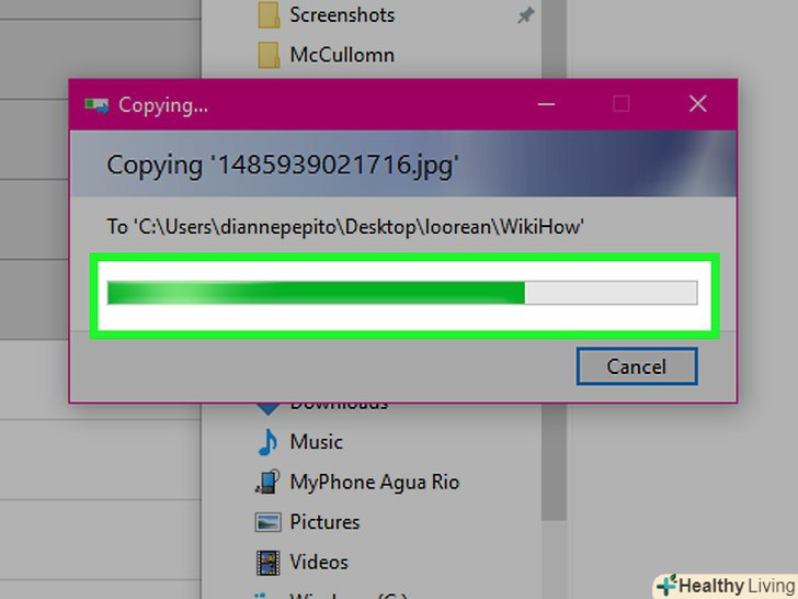 Дочекайтеся, коли файли скопіюються на комп'ютер.на це піде деякий час, який залежить від загального розміру файлів або їх кількості. Під час копіювання не відключайте пристрій від комп'ютера.[1]- Коли процес копіювання завершиться, і якщо вам більше не потрібно нічого передавати, відключіть пристрій від комп'ютера.