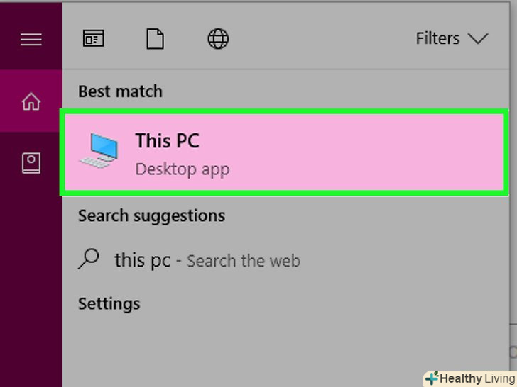 Натисніть < span class="nowrap" title="This is not a clickable button; it illustrates the button one should find." style="font-family: Segoe UI, Frutiger, Frutiger Linotype, Dejavu Sans, Helvetica Neue, Arial, sans-serif;letter-spacing:0px;padding:0em .6em; border:1px solid; border-color:#AAA #555 #555 #AAA; -moz-border-radius: 0px; -webkit-border-radius: 0px; border-radius: 0px; background-color: #F2F2F2; background-image: -moz-linear-gradient(top, #FCFCFC, #E0E0E0); background-image: -o-linear-gradient(top, #FCFCFC, #E0E0E0); background-image:-webkit-linear-gradient(top, #FCFCFC, #E0E0E0); background-image: linear-gradient(top, #FCFCFC, #E0E0E0);">Комп'ютер або Цей комп'ютер. у Windows 10 Ця опція відзначена значком у вигляді папки і знаходиться зліва в меню»Пуск".- Також можна натиснути⊞ Win+E, щоб відкрити вказане вікно.