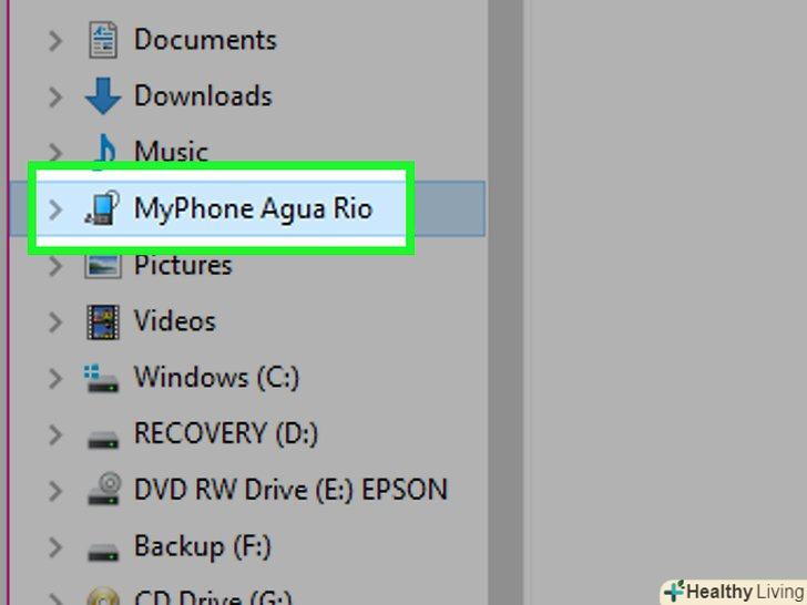 Двічі клацніть по підключеному пристрою.воно відобразиться в розділі "Пристрої" і може бути відзначено номером моделі.- Переконайтеся, що пристрій розблоковано і на ньому активовано режим передачі файлів або режим «MTP».