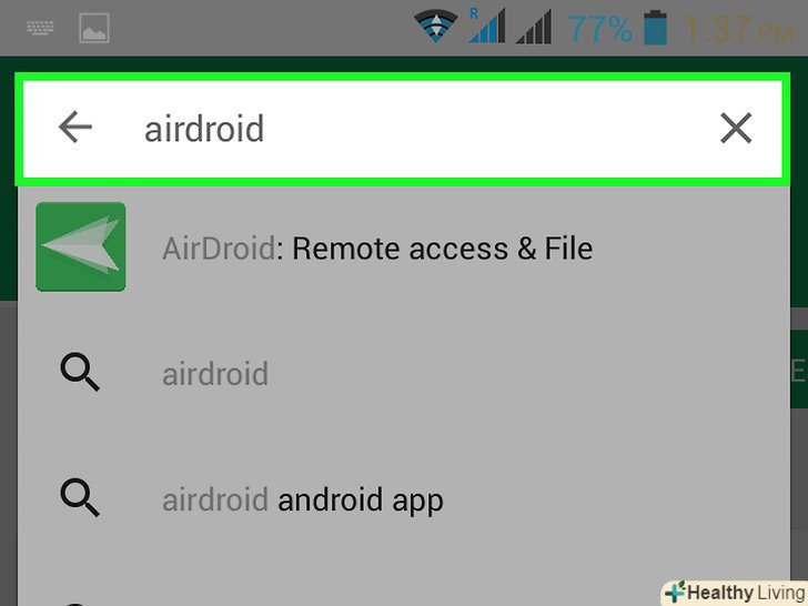 Введіть "AirDroid" в рядку пошуку Play Маркета.тепер торкніться "AirDroid" в результатах пошуку.
