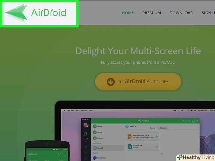 Відкрийте сайтairdroid.com/ru/ на комп'ютері.