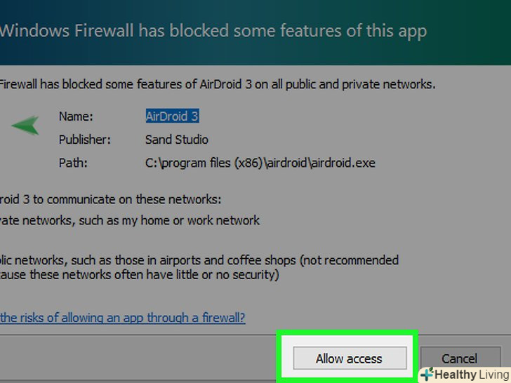 Натисніть < span class="nowrap" title="This is not a clickable button; it illustrates the button one should find." style="font-family: Segoe UI, Frutiger, Frutiger Linotype, Dejavu Sans, Helvetica Neue, Arial, sans-serif;letter-spacing:0px;padding:0em .6em; border:1px solid; border-color:#AAA #555 #555 #AAA; -moz-border-radius: 0px; -webkit-border-radius: 0px; border-radius: 0px; background-color: #F2F2F2; background-image: -moz-linear-gradient(top, #FCFCFC, #E0E0E0); background-image: -o-linear-gradient(top, #FCFCFC, #E0E0E0); background-image:-webkit-linear-gradient(top, #FCFCFC, #E0E0E0); background-image: linear-gradient (top, #FCFCFC, #E0E0E0);">дозволити доступ, коли з'явиться запит Windows.