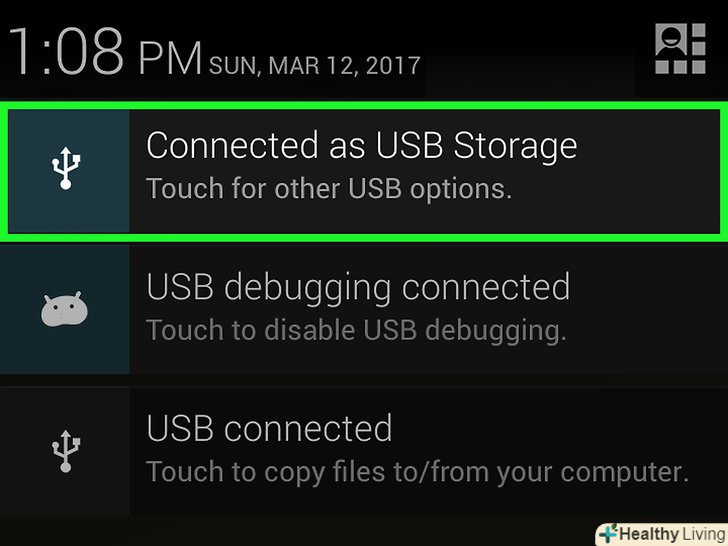 Підключіть Android-пристрій до USB-порту комп'ютера.для цього скористайтеся зарядним кабелем пристрою.