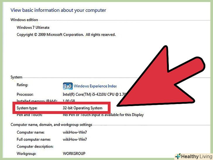 Знайдіть вашу версію Windows.якщо у вас 64-бітна версія Windows, вам потрібно буде використовувати обхідні шляхи, щоб встановити Photoshop. Погляньте на цю статтю, щоб дізнатися, яка версія Windows 7 у вас.
